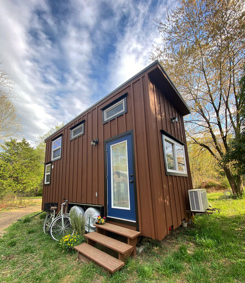 I worked with Incredible Tiny Homes to design and build my home through their Workshop Build program (since discontinued). They managed the overall build, ordering supplies like lumber, my trailer, windows/doors, and hardware, and completing the more complex items like the plumbing, electricity, and propane lines. I brought a few helpers to Tennessee to work on the house for a week to complete things like exterior siding, interior paneling, flooring, window trim, etc. and purchased/brought along my appliances and plumbing fixtures, as well as any custom finish details I wanted. Cosmetic finishes like painting, sanding, and some custom furniture/storage pieces are in the process of being completed by me and my ever-vigilant helpers (read: my dad because he is a woodworking wizard and I couldn't have done any of this without him). Stay tuned for more updates!